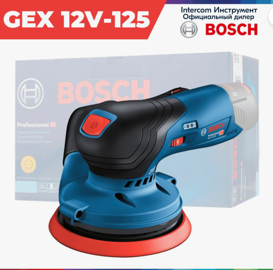 Купить Аккумуляторная эксцентриковая шлифмашина BOSCH GEX 12V-125, 0601372101 (без Ак и Зу). Бесщёточный двигатель.