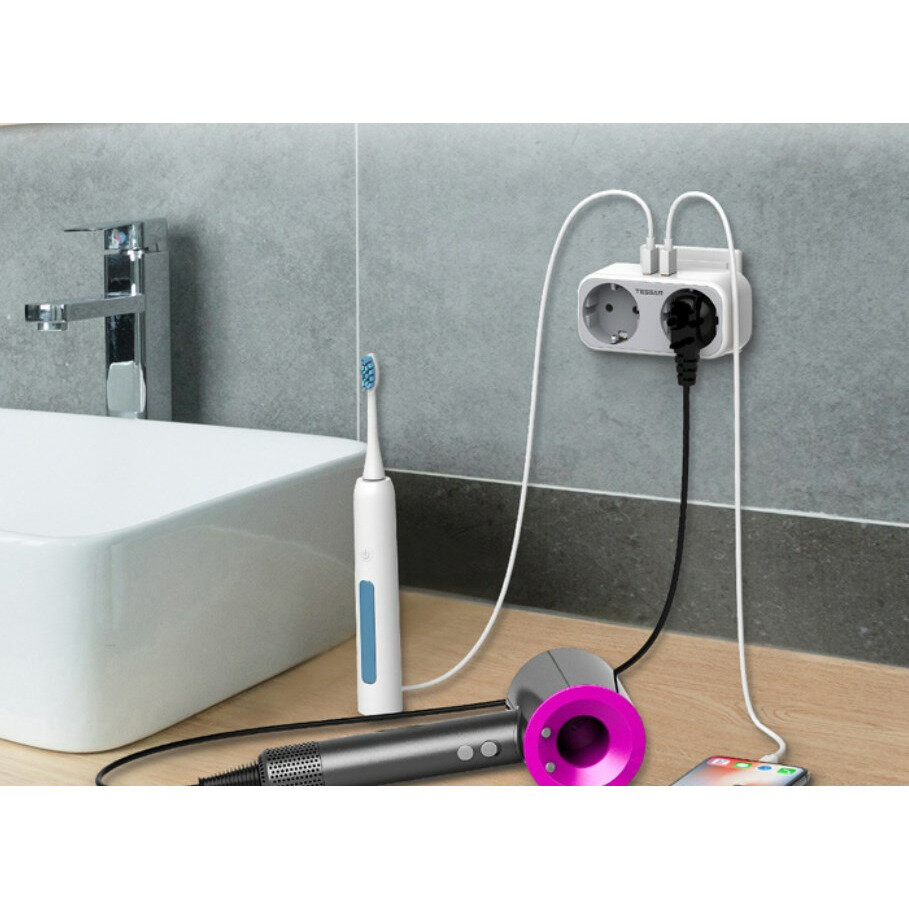 TESSAN Тессан сетевые фильтры TS-321-DE White Сетевой фильтр с 2 розетками 220В и 2 USB портами