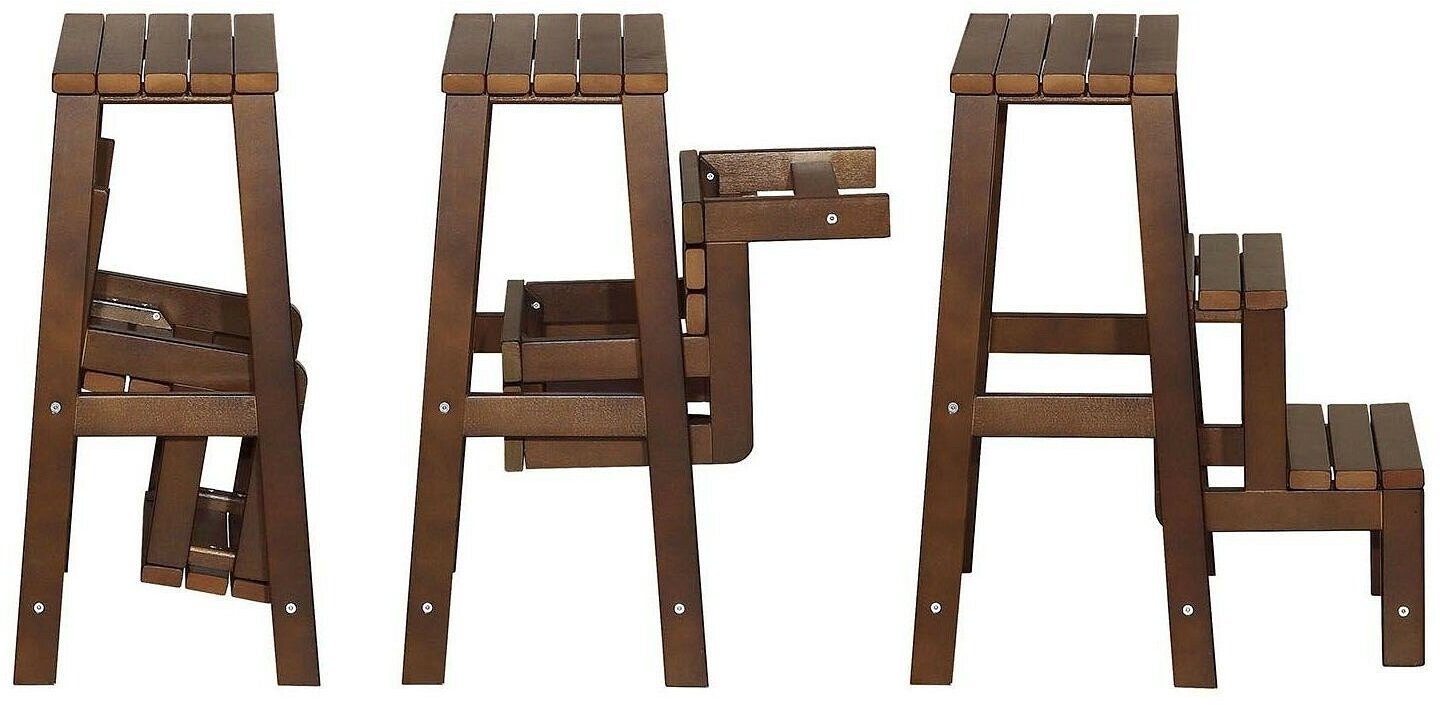 | Плюсы: | Красивая незаменимая стремянка на кухне да и вообще в квартире. Компактная, покрыта лаком, легко оттирается грязь. |