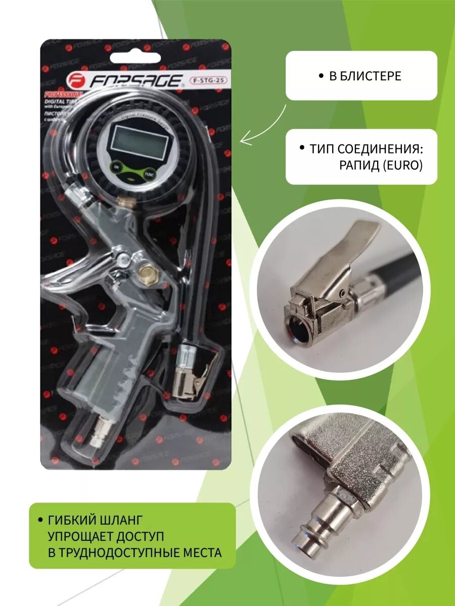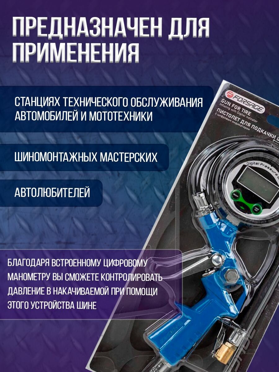 Пистолет для подкачки колес с цифровым манометром и шлангом, в блистере FORSAGE F-STG-25 | цена за 1 шт