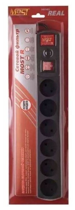 Сетевой фильтр MOST Real R, 6 розеток, б/з, 6А / 1300 Вт черный 2 м