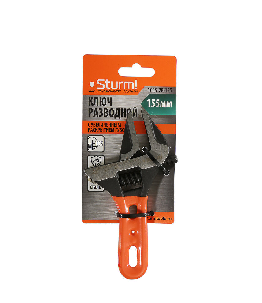 Ключ Sturm! 1045-28-120 разводной c короткой ручкой 120мм, зев 24мм, CrV 1045-28-120 .