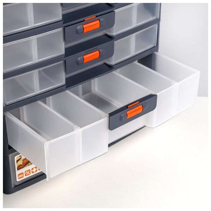 Органайзер для хранения Пластик Репаблик "Expert", для мелочей, 4 секции, свинцово-серый, оранжевый
