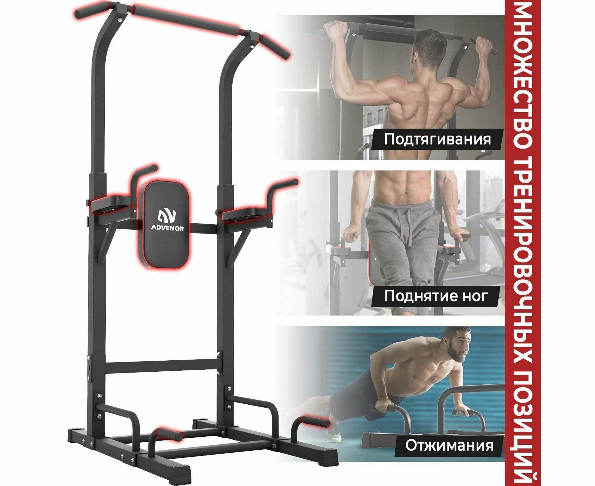 | Дополнительные функции | мягкие подушки / регулировка по росту / ручки для хвата / разные положения для хвата / работа с прессом / противоскользящие ручки |