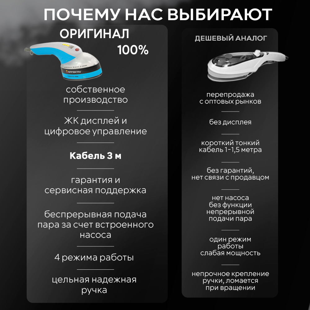 СохранитьРучной отпариватель / Паровой утюг Effektiv TurboVapor 1050X с непрерывной подачей пара Синий интересное: