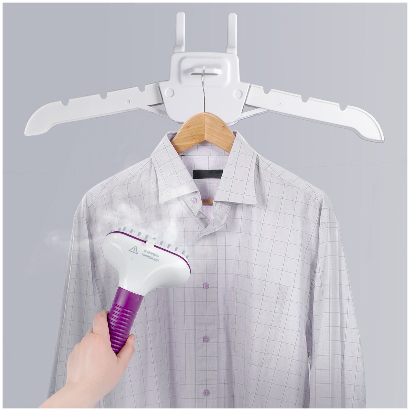 | Дополнительная информация | в комплекте: четырехсекционная телескопическая стойка длиной 124 см, теплоизолированный шланг для подачи пара длиной 145 см, складная вешалка для одежды с подставкой для распылителя, контейнер для воды |