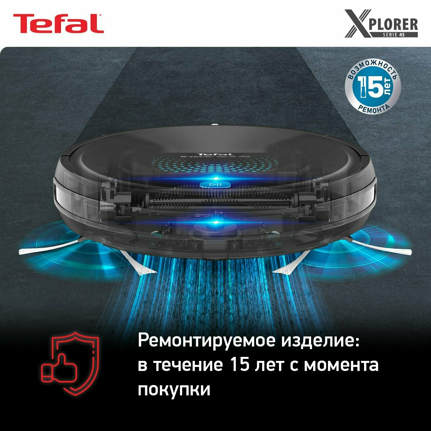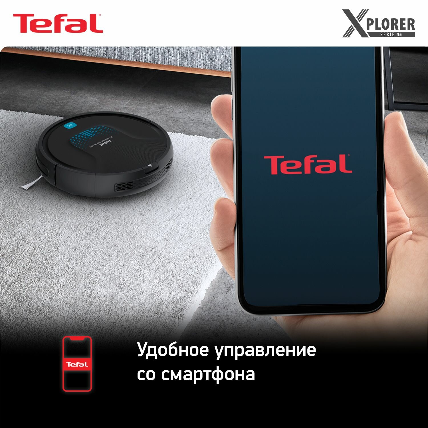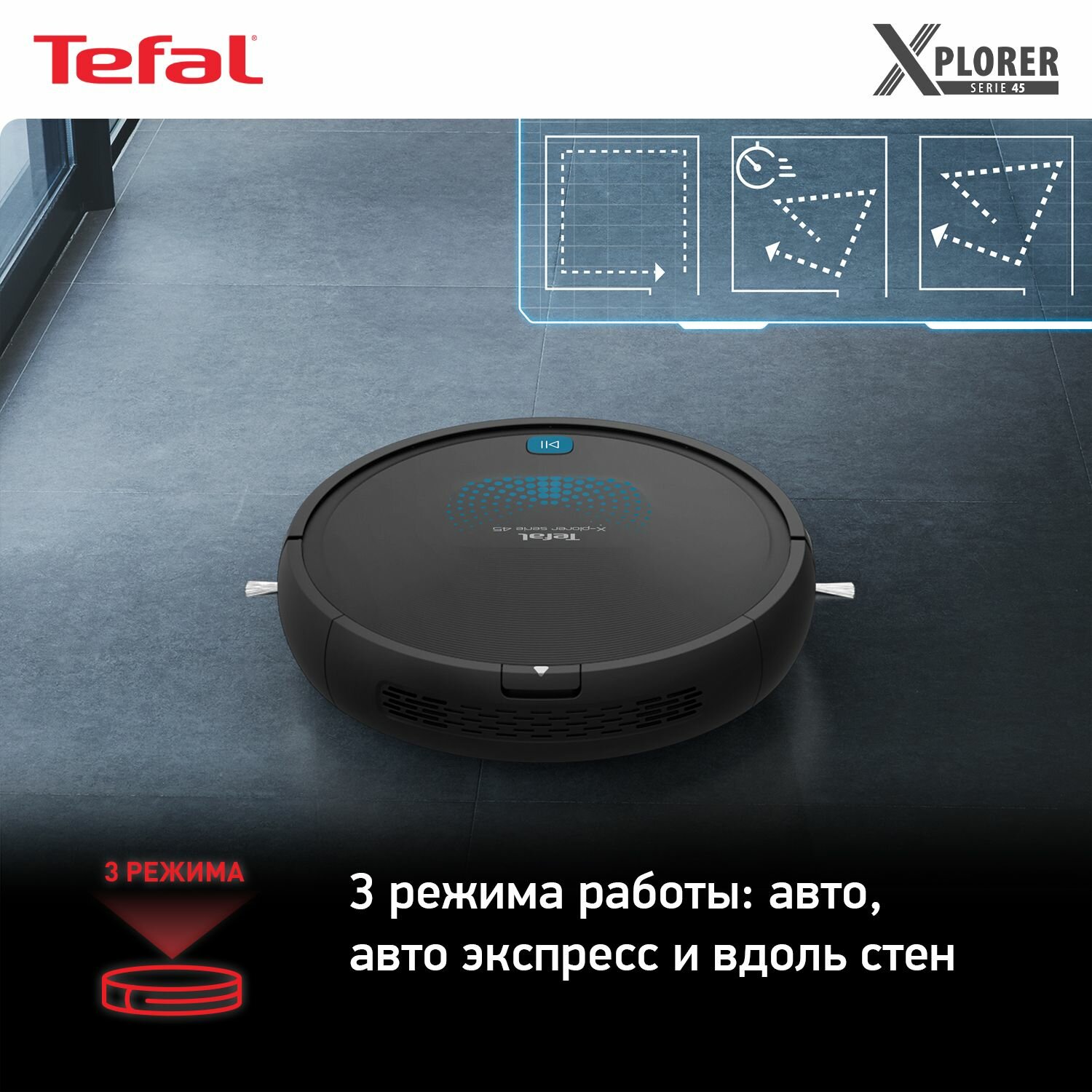Робот-пылесос 2в1 Tefal X-Plorer S45 RG8275WH работает с Алисой, с сухой и влажной уборкой до 2,5 ч, черный интересное: