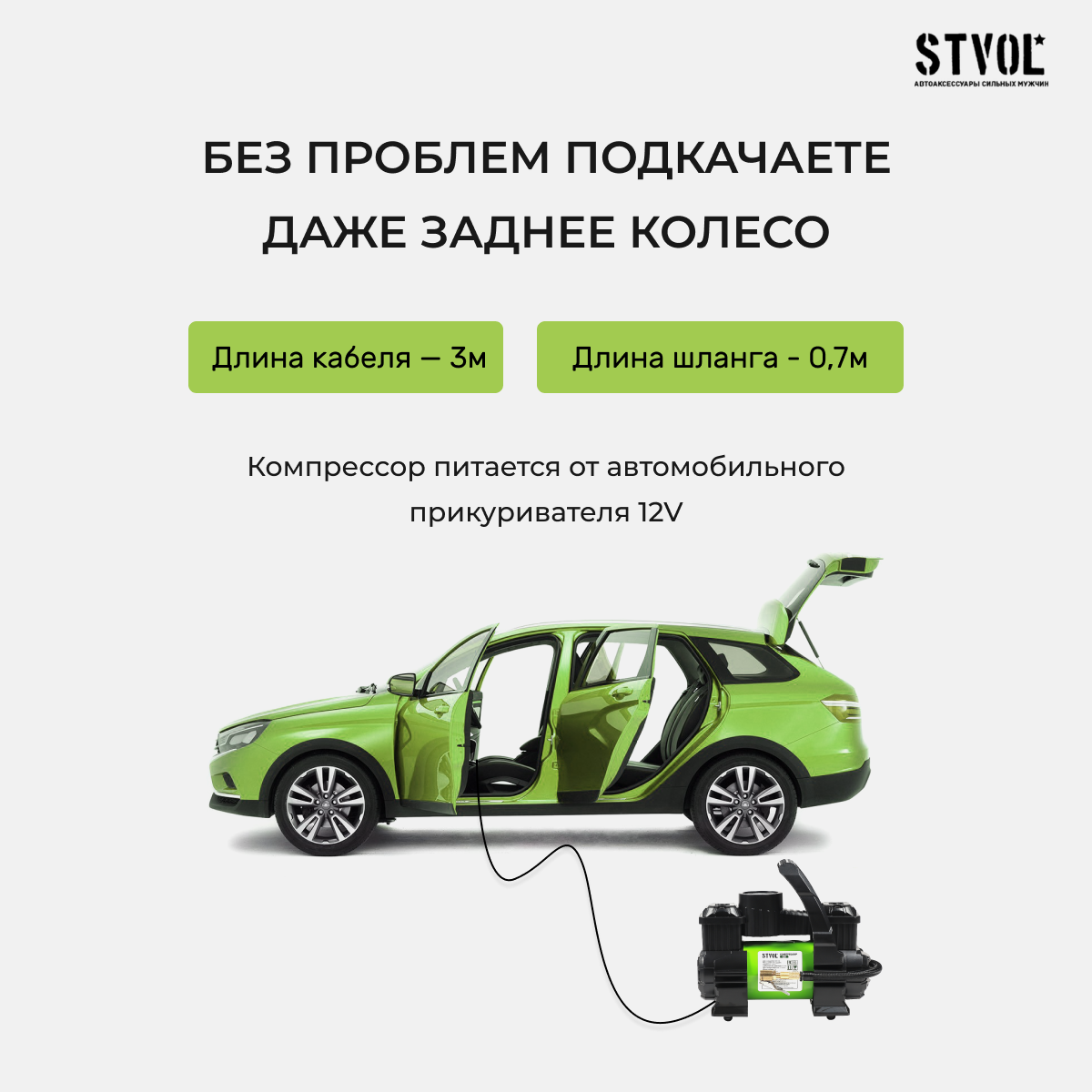 Компрессор автомобильный Stvol Q5, 50 л/мин