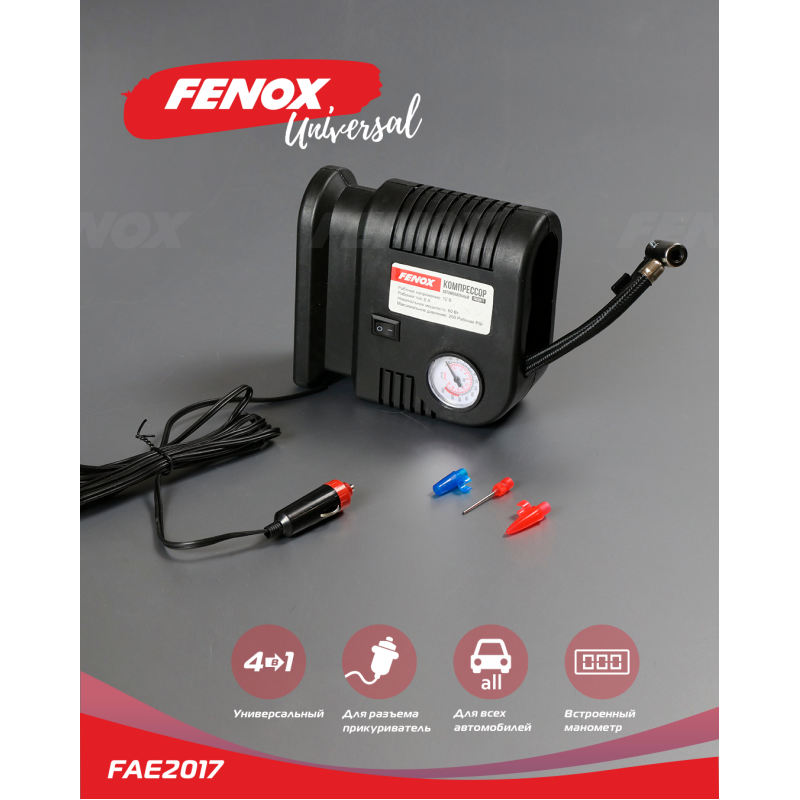 Автомобильный компрессор с 3 насадками, насос для бассейна, велосипеда, мяча - FENOX арт. FAE2017