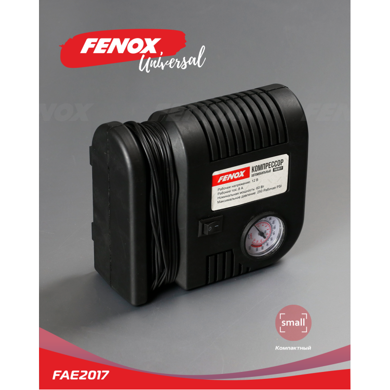 FENOX FAE2017 Компрессор автомобильный ABS пластик, металл, PVC, 12В, 10А, 120Вт, 35л.мин 16*14*6.5 см