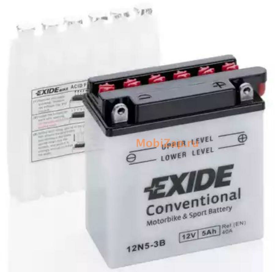 Exide 12N5-3B_аккумуляторная Батарея! Евро 5Ah 40A 120/60/130 Moto Сухозар. С Упаков. Электролита EXIDE арт. 12N5-3B
