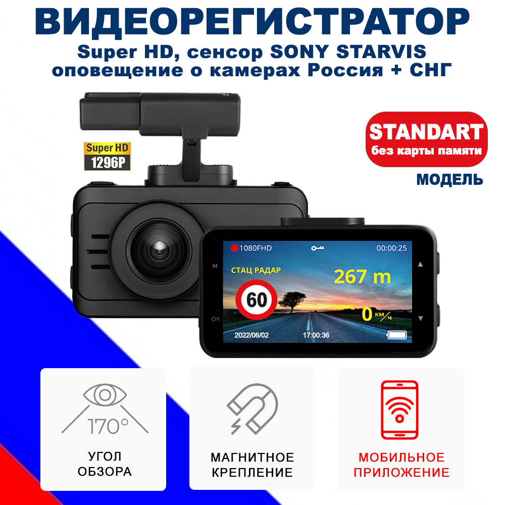 | Дополнительная информация | оповещение о камерах при помощи GPS-баз; управление и обновление при помощи смартфона; поляризационный CPL-фильтр |