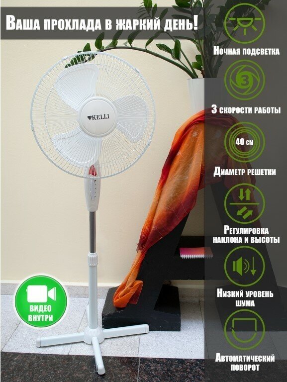 Вентилятор Kelli KL1016, 45Вт, площадь до 20м², пластик, 2 скорости, белый интересное: