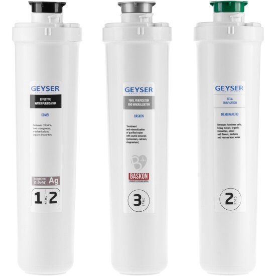 | Отзыв: | Покупал за 3300 р., что было значительно выгоднее, чем покупать отдельно каждый картридж. Сейчас разницы нет. Дата производства свежая, на вид оригинальные. Сначала смутило, что наклейка на мембранном картридже отличается от старой, но посмотрел на сайте Гейзера - просто обновился дизайн.