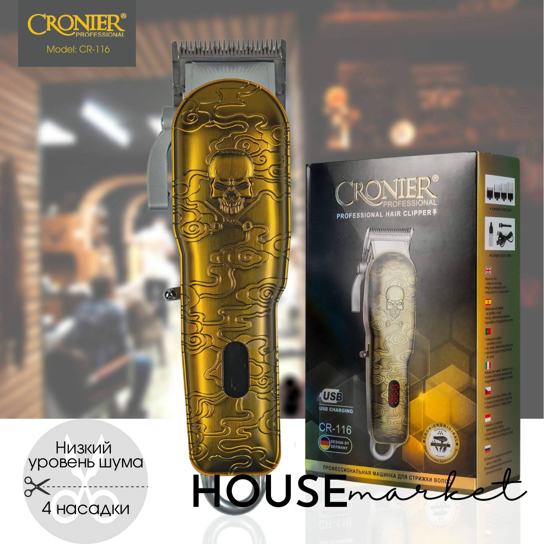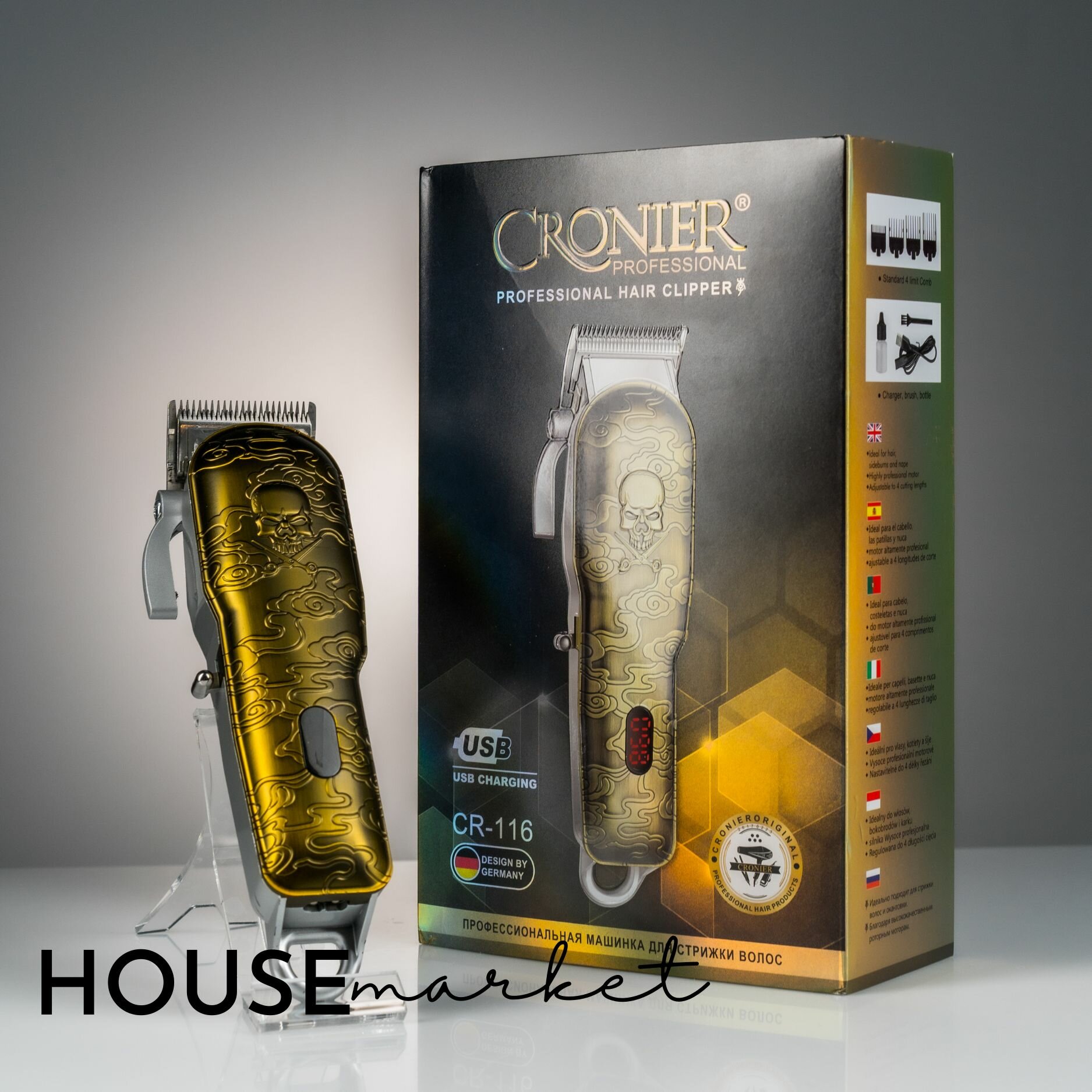 Купить Машинка для стрижки волос профессиональная, бороды и усов, беспроводная, 4 насадки.