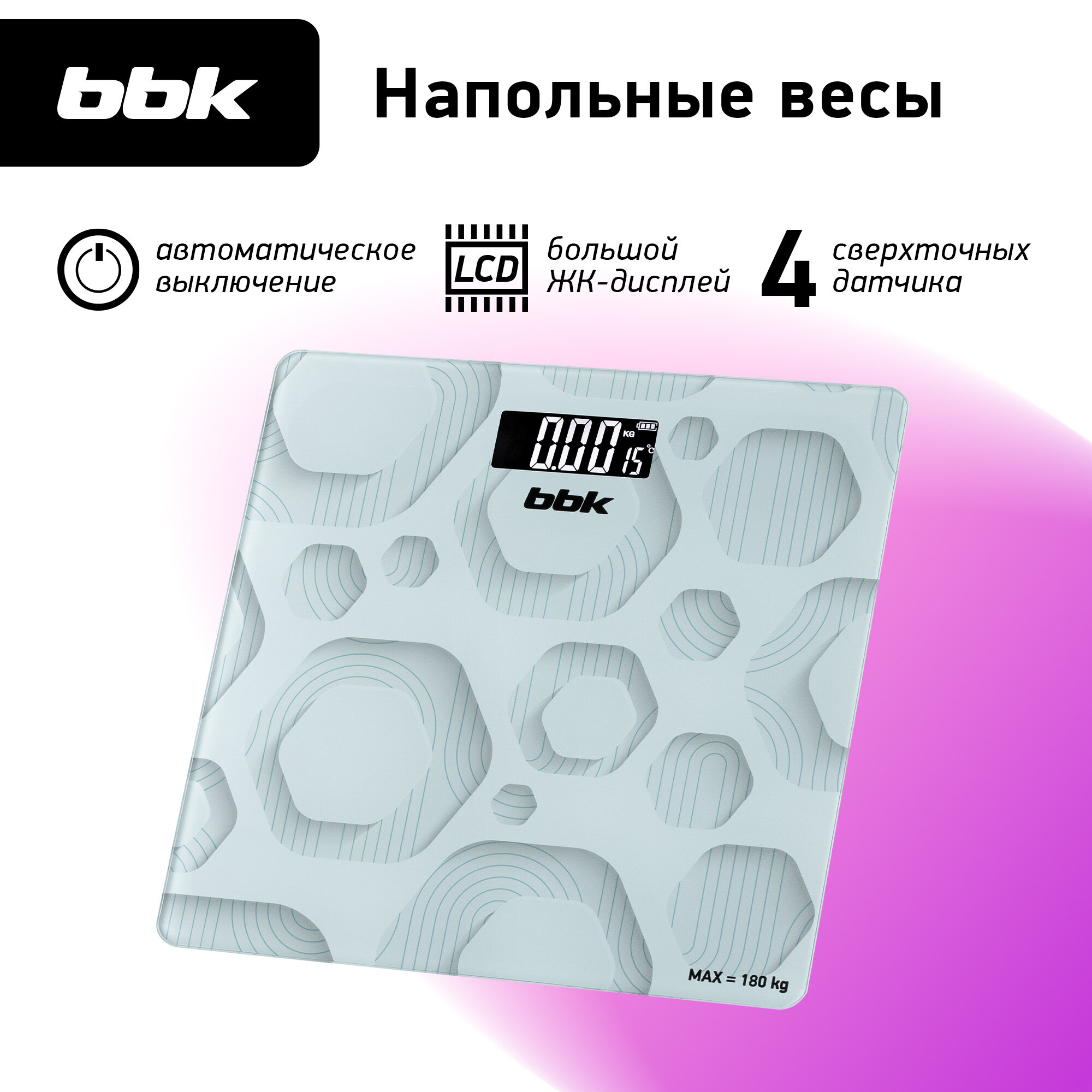 Весы напольные BBK BCS3005GE, 180кг, стекло, белый/серый