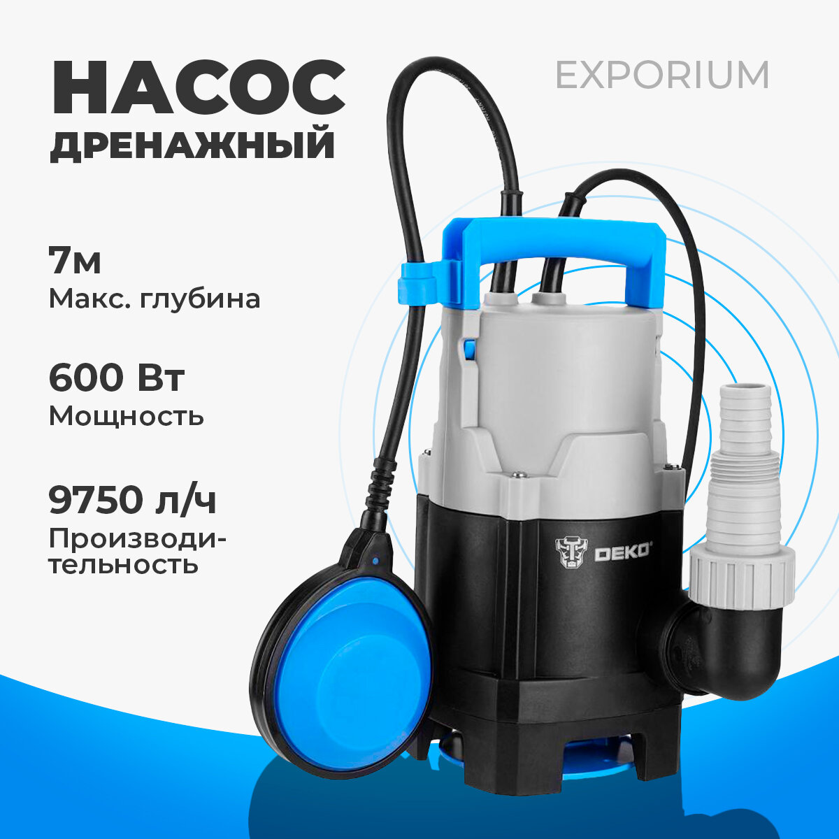 Дренажный насос для грязной воды Deko DWP-600P (грязевая, поплавок, 220В, 600Вт, пластик) 076-0519