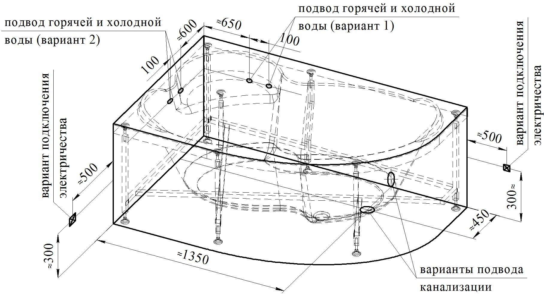 | Подробная комплектация | Ванна акриловая, металлический каркас. |