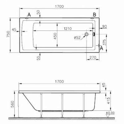Ванна акриловая VitrA Neon 52530001000 170x70 см (без опоры), белый