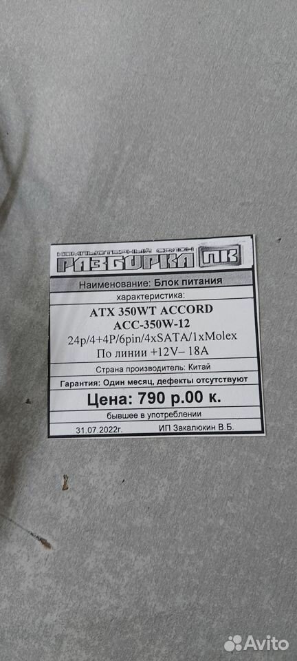 | Отзыв: | ACCORD ACC-350-12 350W - это аккуратная подделка под БП. Реальная мощность нового БП - ватт 200 от силы.