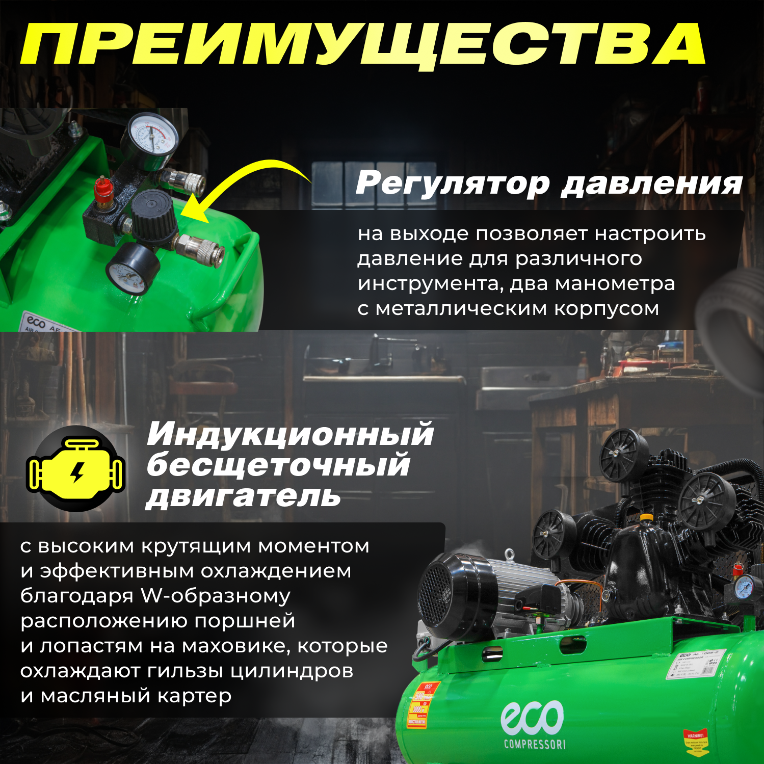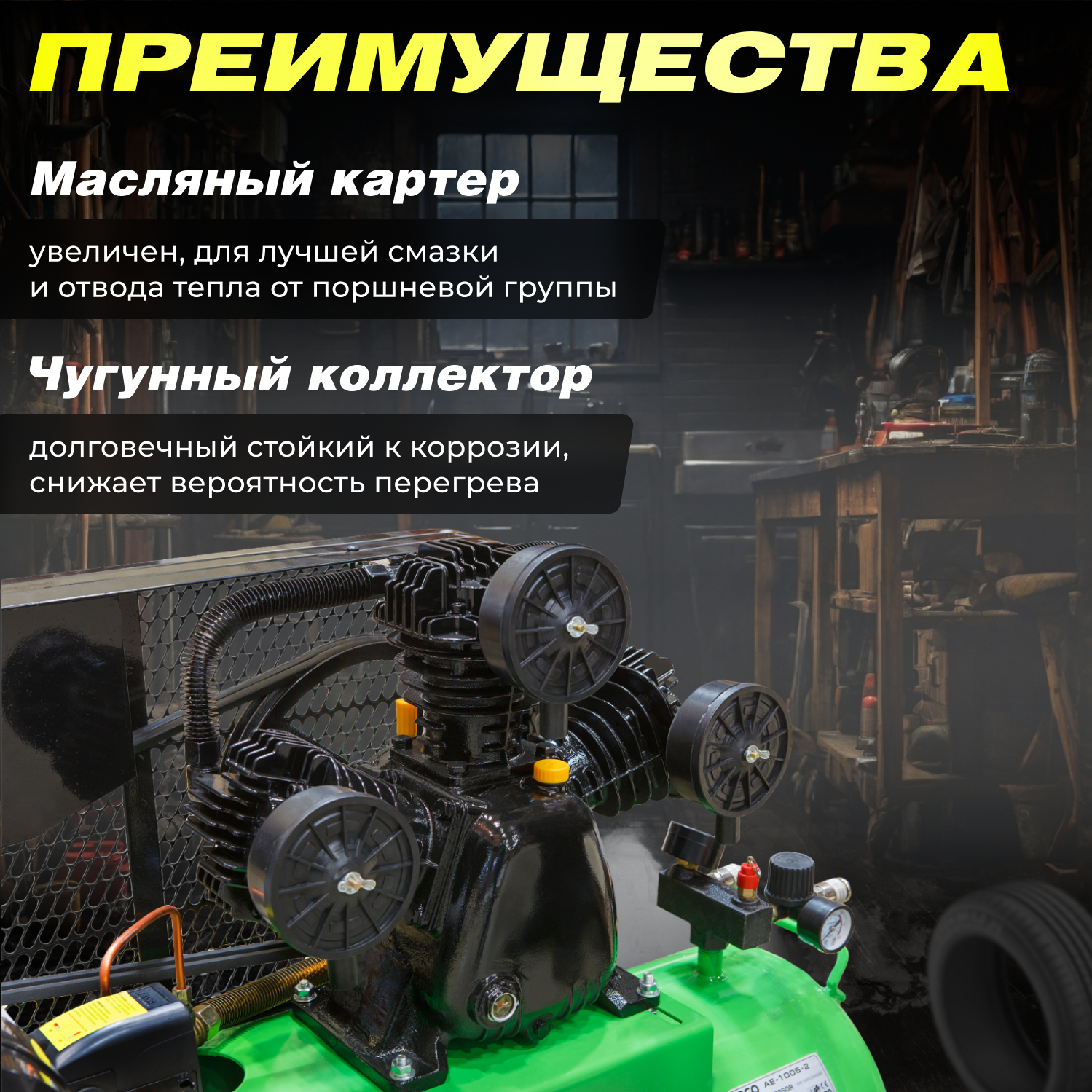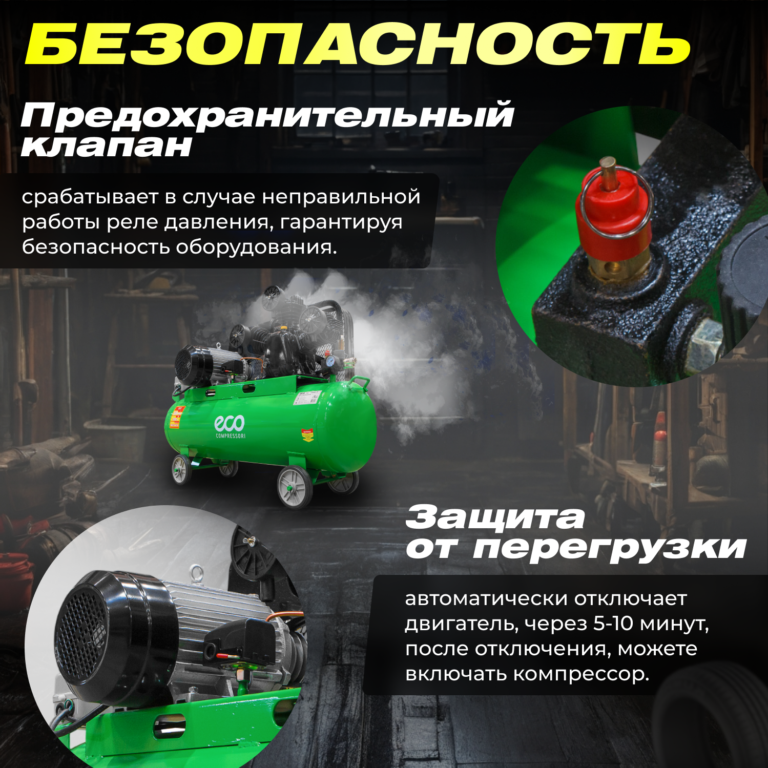 Компрессор воздушный масляный ECO AE-1005-2 (580 л/мин, 8 атм, ременной, ресив. 100 л, 380 В, 3.00 кВт) интересное:
