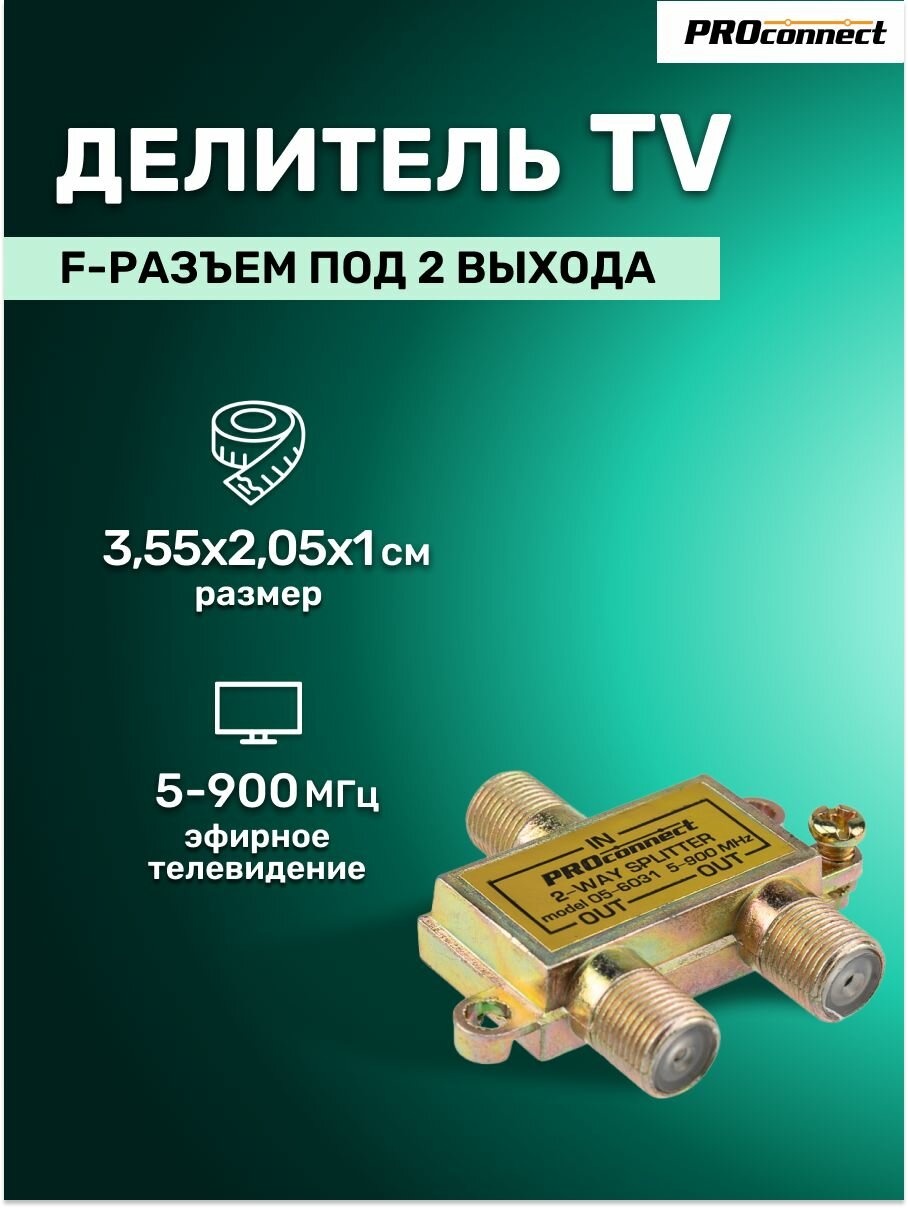 Антенный делитель ТВ-сигнала PROconnect сплиттер на 2 выхода под F-разъемы, 5-900 МГц