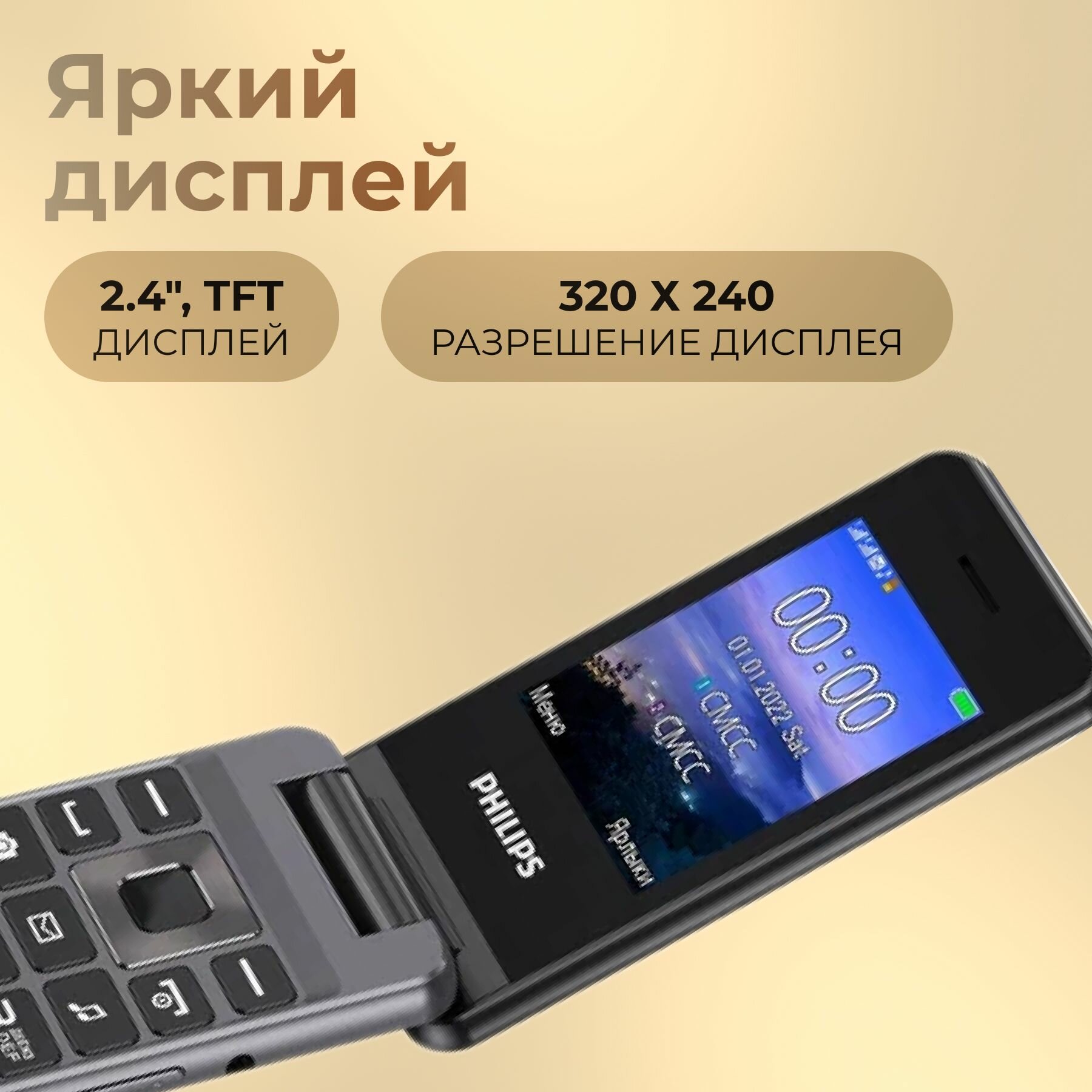 Сотовый телефон Philips Xenium E2601 Dark gray (2sim/2.4"/240*320/32Mb/microSD/0.3Мп/Bt/1000мАч/раскладушка)