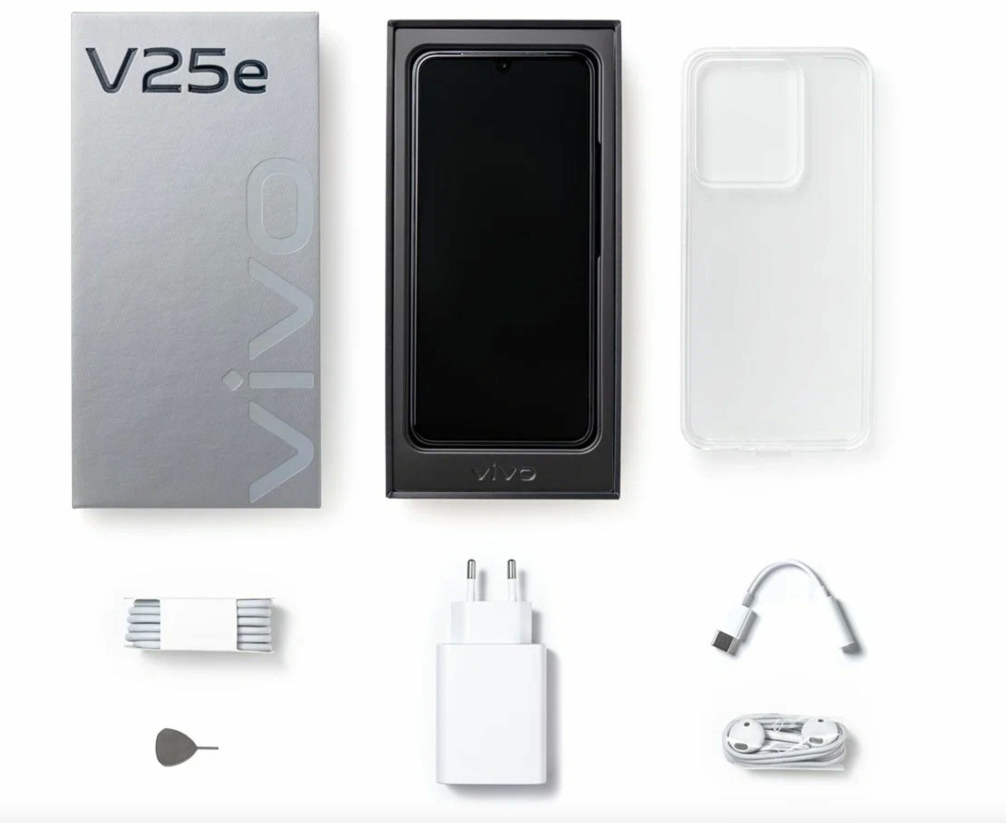 | Комплектация | V25e, кабель Type-C—USB, адаптер питания USB, кабель Type-C—mini jack 3 5 мм, скрепка для извлечения SIM-карты, защитный чехол, защитная пленка (нанесена) |