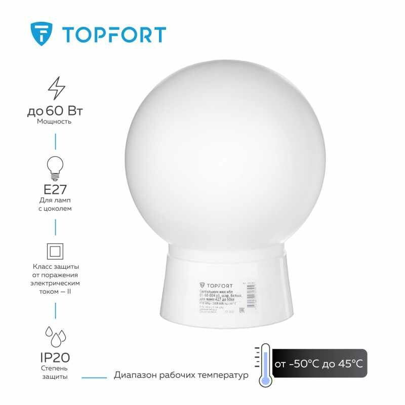 Светильник ЖКХ TOPFORT НБП 01-60-004 У3, шар, белый, для ламп E27 до 60Вт