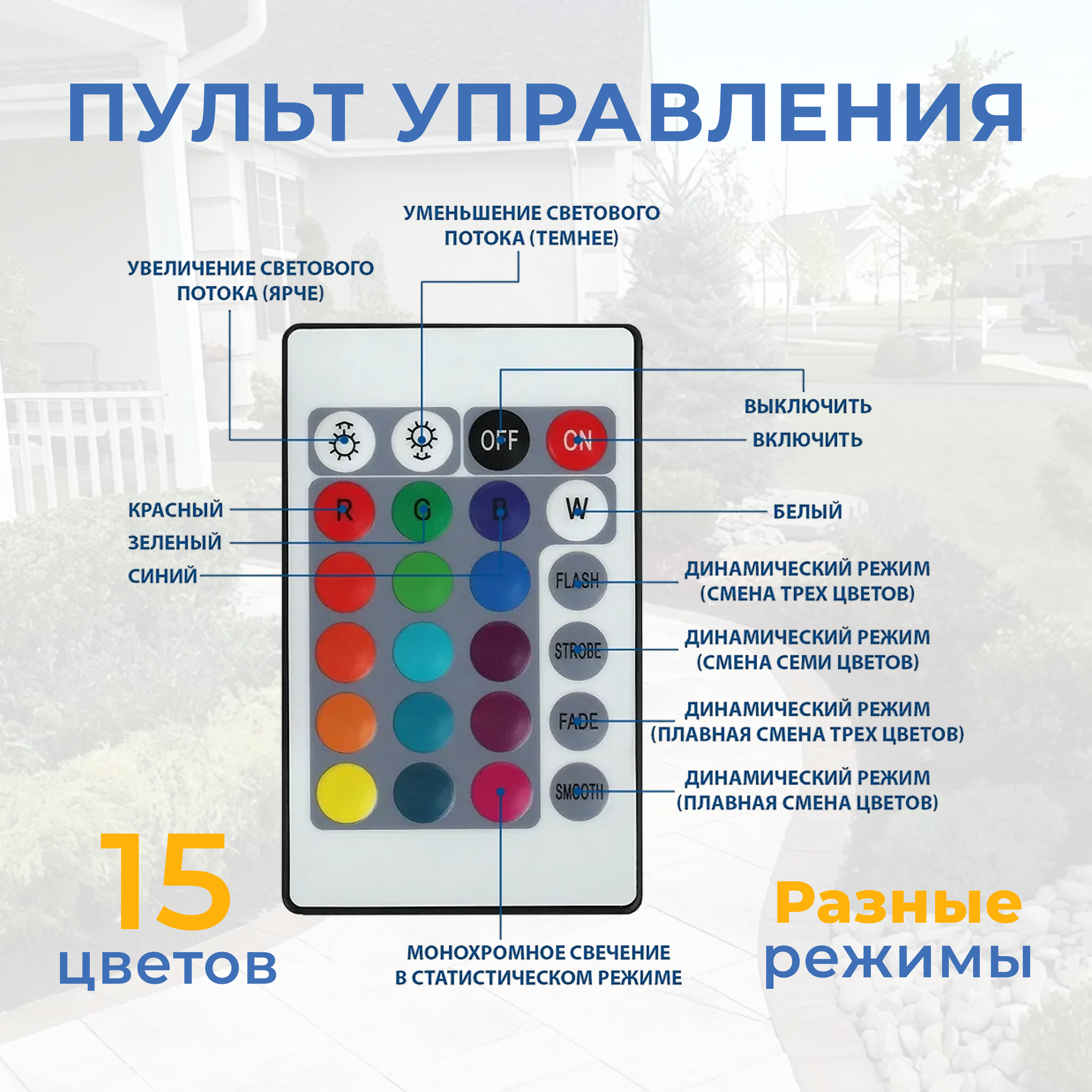 режим плавной смены цветов с преобладание белого. короткий шнур, лучше бы была клемма. Прожектор никак не разбирается, чтобы подключить другой шнур или поправить положение датчика. |