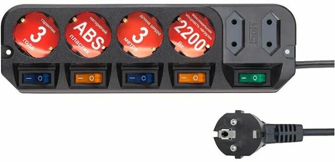 | Плюсы: | Компактный, выключатель общий и на 4 розетки отдельные. |