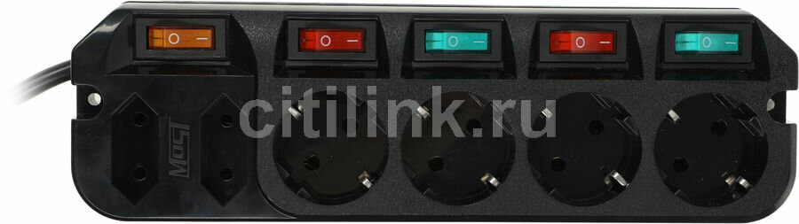 Удлинитель с индивидуальными выключателями MOST A16, 6 розеток, 3500 Вт черный 5 м