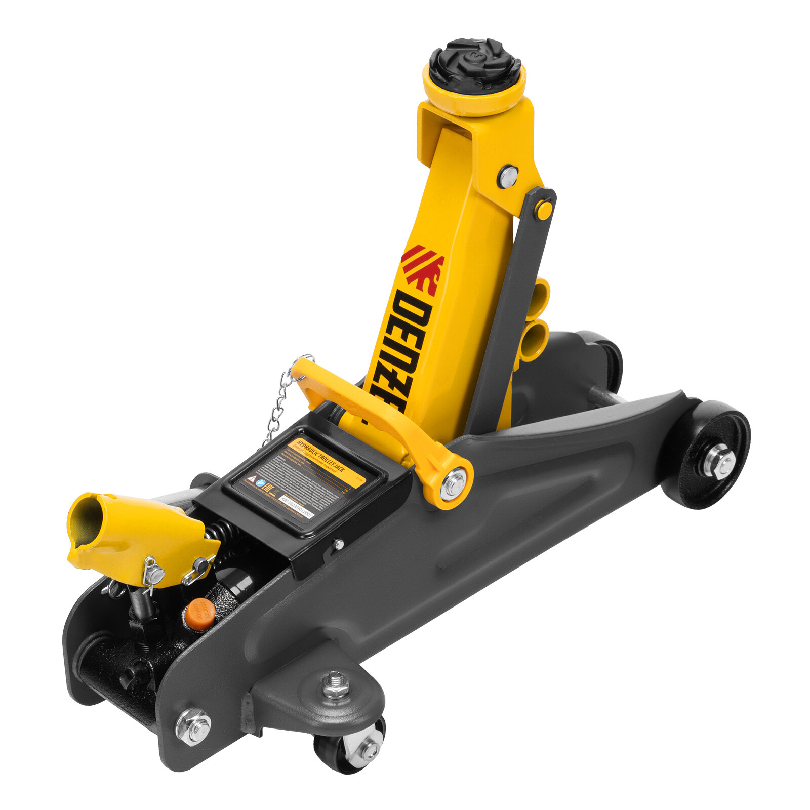 Домкрат гидравлический подкатной с фиксатором, 2 т, 130-330 мм// Denzel