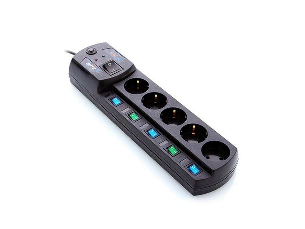 Сетевой фильтр MOST Elite EHV, 5 розеток, с/з, 10А / 2200 Вт черный 2 м 335 мм 85 мм 60 мм 5