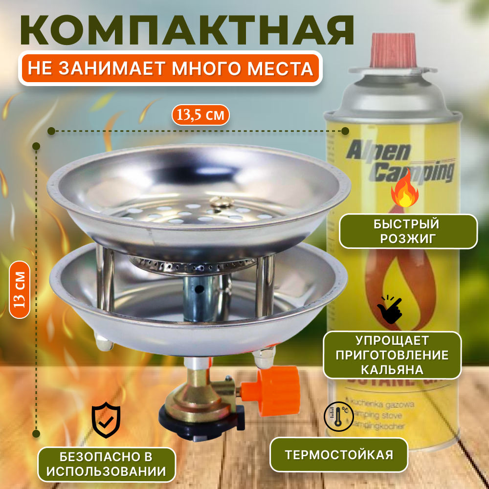 Купить Печь для розжига углей. "Печка плитка для углей" на газовой горелке. Газовая плита горелка. Стальная. Серебристая. Щипцы для углей в подарок.