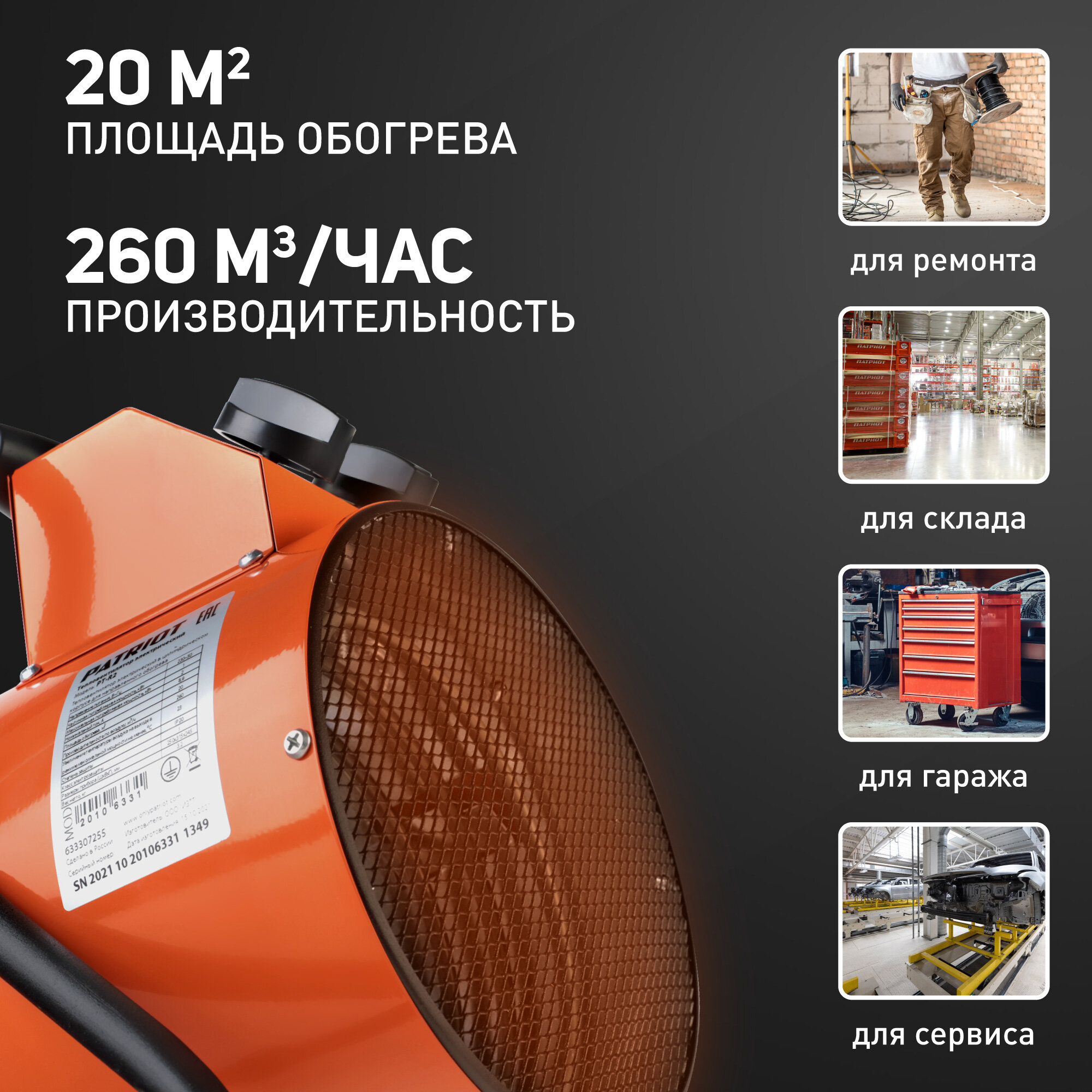 Тепловая пушка электрическая PATRIOT PTR 2, 633307255