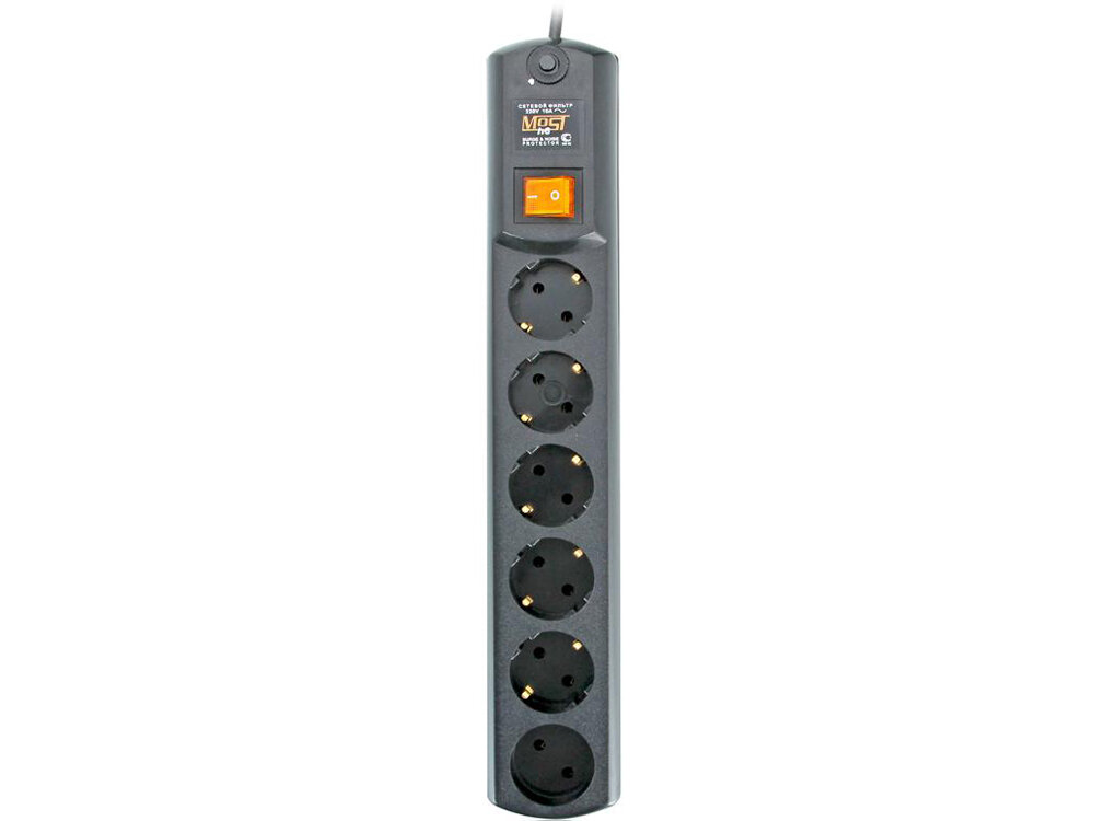 Сетевой фильтр Most H6, 5м, черный [моsт н6-ч 5м]