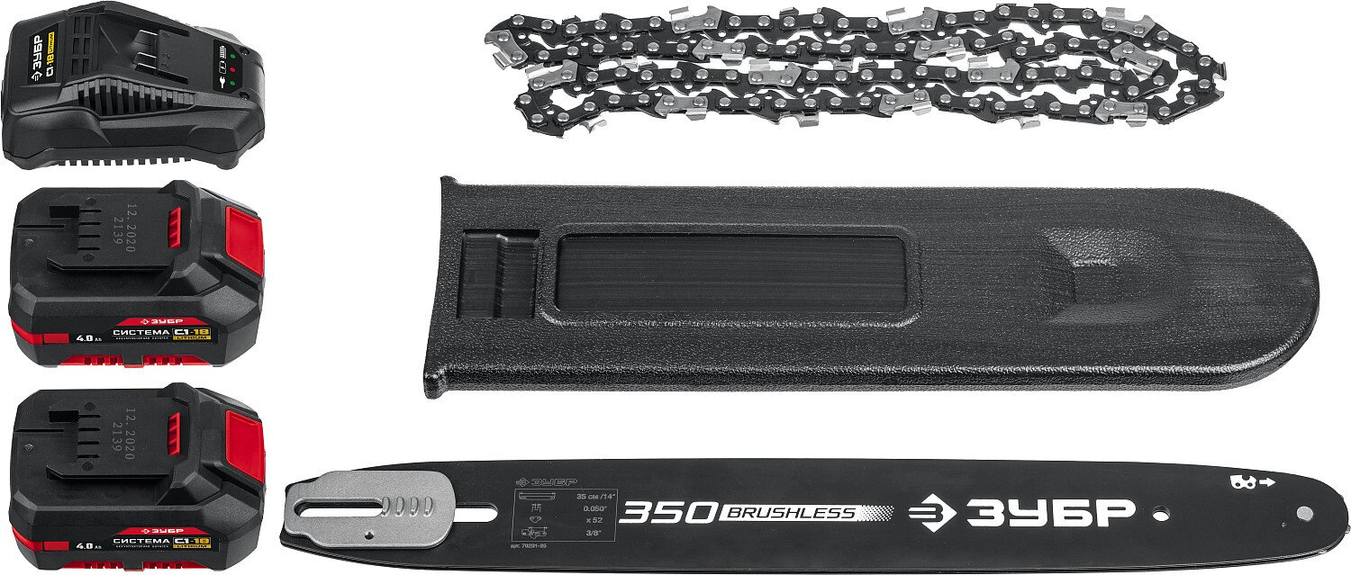 ЗУБР С1-18, 36 В, 35 см шина, 2х18 В АКБ (4 Ач), бесщеточная цепная пила (ПЦЛ-3635-42)