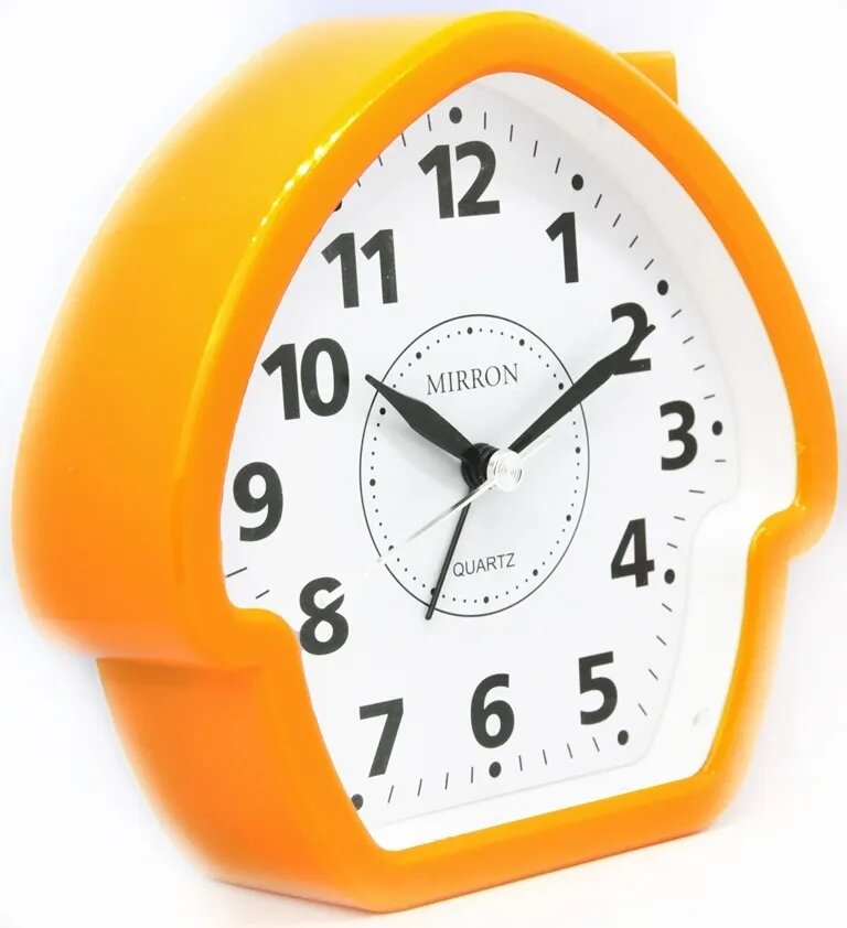 Купить Оранжевый детский будильник MIRRON 8368 О/Яркий оранжевый цвет корпуса/Белый (светлый) циферблат/Часы на тумбочку/Будильник в детскую комнату/Будильник в спальню/Классический, обычный будильник/Часы, будильник в форме домика