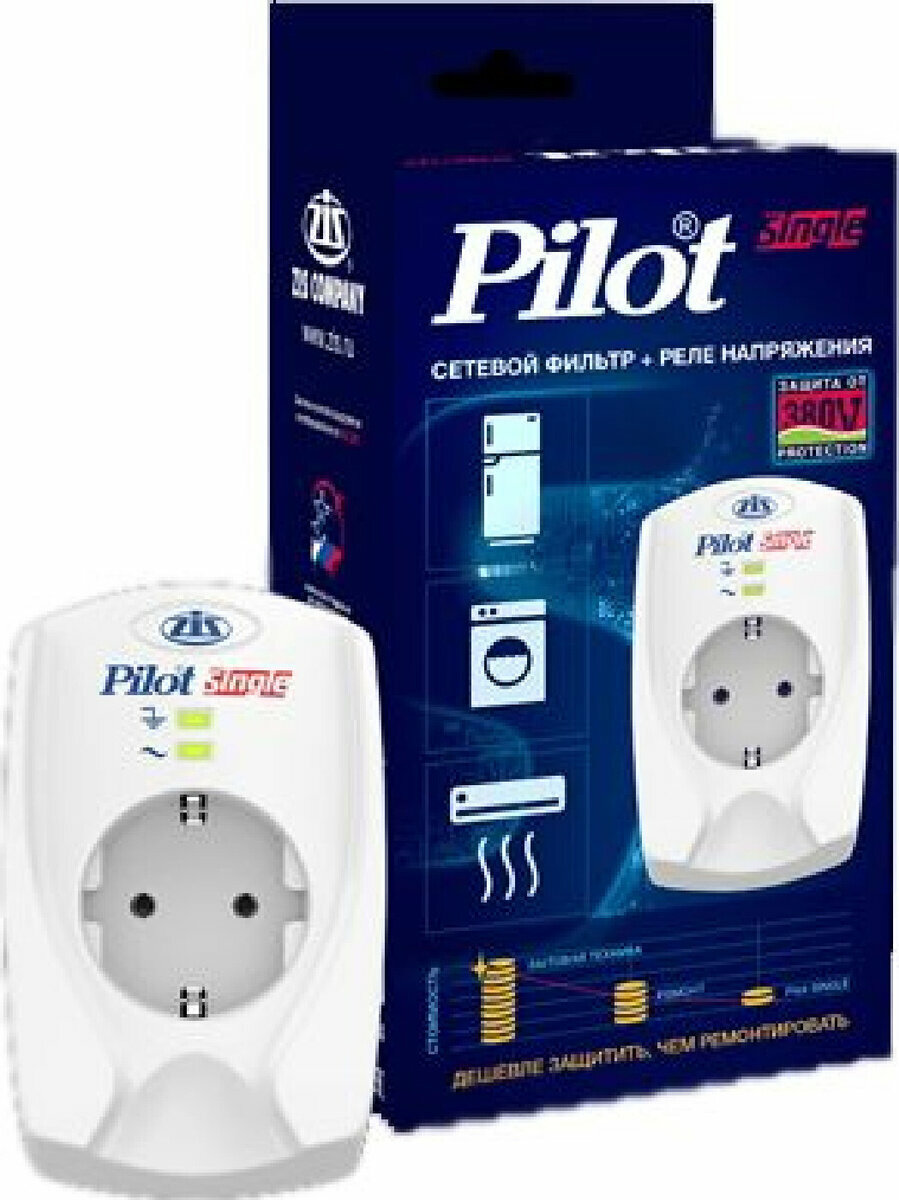 Сетевой фильтр Zis Pilot Single, 1 розетка, Zero Start биметаллический предохранитель, микропроцессор (16А) (Pilot Single)