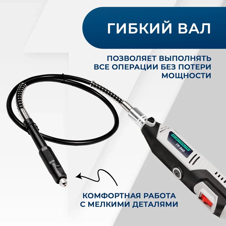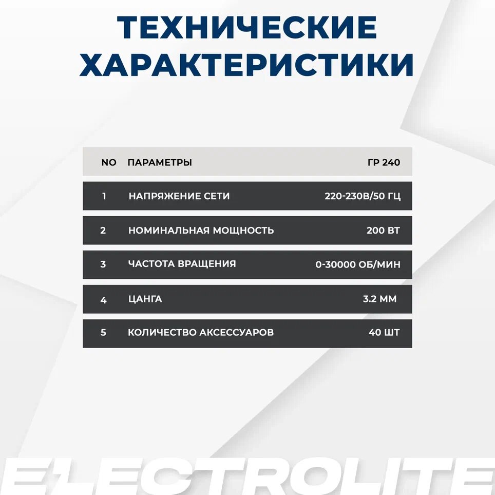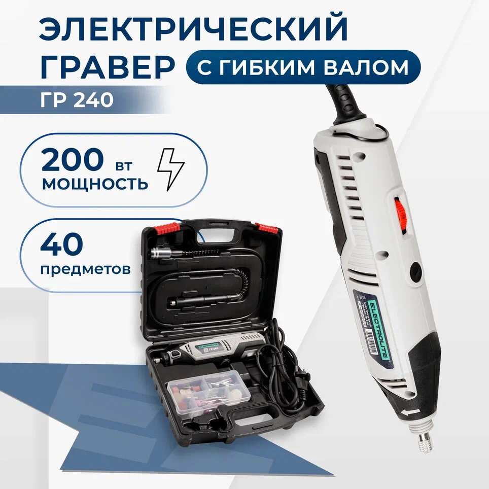 Гравер электрический Electrolite ГР 240 с гибком валом ( 200 Вт, 30000 об./мин, 40 шт насадок, кейс)