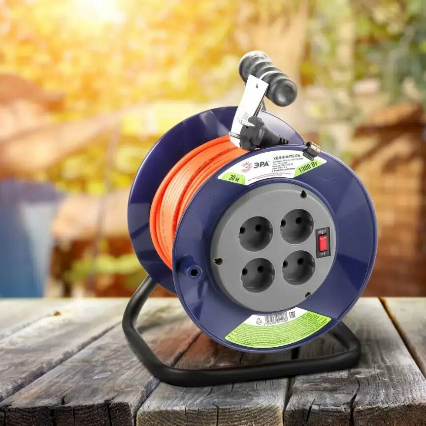 Удлинитель силовой на пластиковой катушке ЭРА RPx-4s-2x0.75-30m без заземления 4 розетки 30м 6А