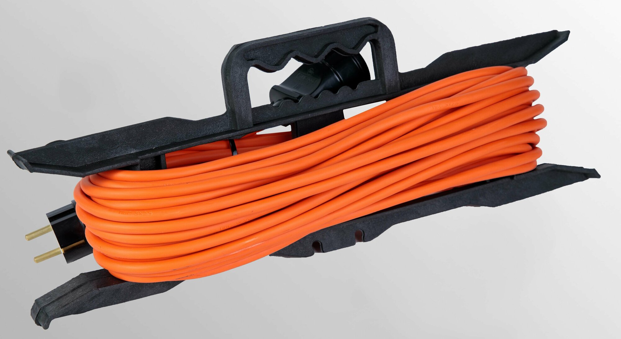 Уличный удлинитель сетевой 30 м с одной розеткой на рамке без заземлениядля садовых и строительных электроинструментов, ПВС 2х1,5 16А, 3500Вт, IP44
