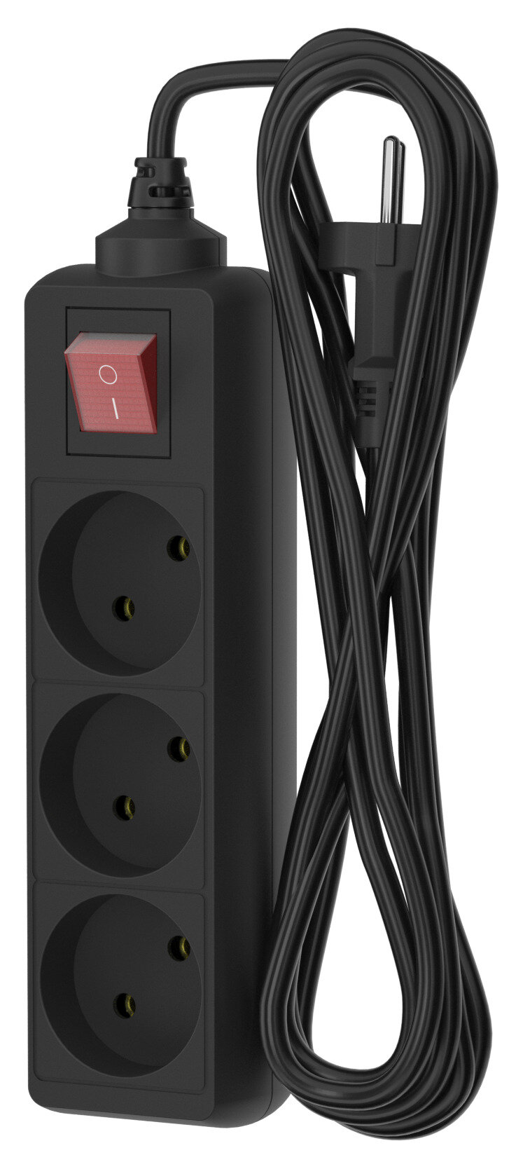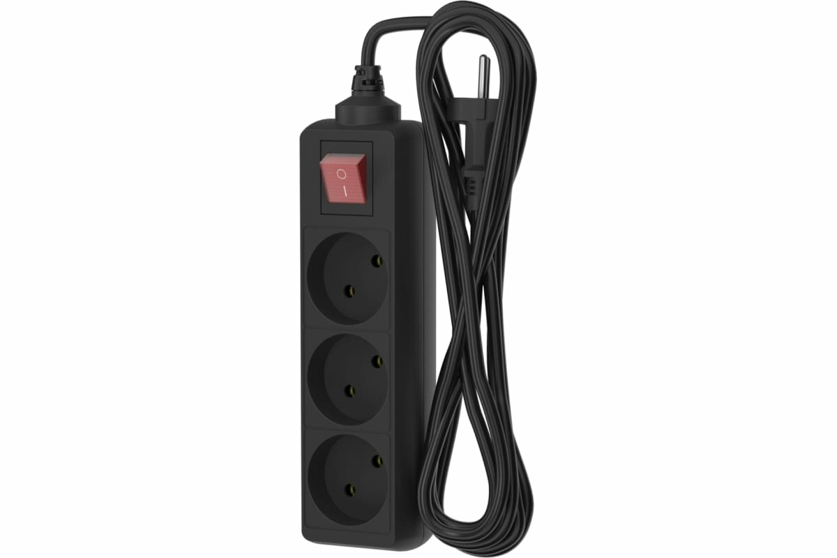 Удлинитель для гирлянды сетевой для розетки фотон 10А 2 метра 3 розетки с выключателем черный, ГОСТ