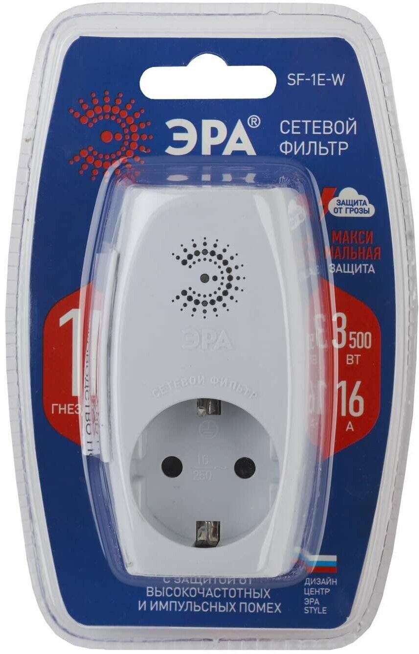 Сетевой фильтр ЭРА SF-1e-W с максимальной защитой с заземлением 1 розетка 16 А белый