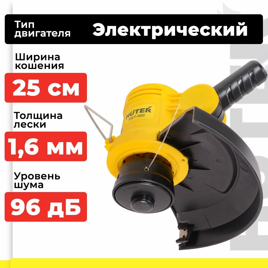 Триммер электрический Huter GET-500, 500 Вт, 12000 об/мин, d=1.2 мм, скос 25 см интересное: