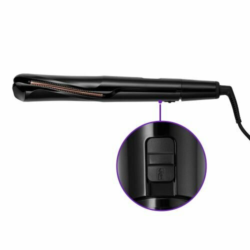 Еще супер удобно, что кнопка находится внутри выпрямителя, что исключает возможность выключения во время использования. Еще невероятный +, что шнур крутится во время укладки и не приходится перекидывать руку. Также стоит отметить удобную регулировку температуры, что также помогает во время укладки не поставить нечаянно больше. Шаг регулировки очень комфортный. |