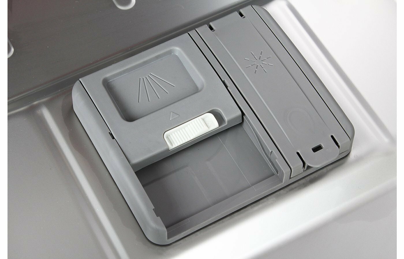 1. 8 режимов на все случаи, от замачивания до авто; 2. 3 лоток с регулировкой, терпеть не могу корзины. Удобная регулировка средней корзины по высоте; 3. Удобное управление меню на русском языке; 4. Луч в пол; 5. Автоматическое открывание дверцы после мойки; 6. Внутренняя подсветка; 7. Электронный дозатор соли и ополаскивателя, с датчиками. Выдвижной, а не открывающийся лючок для таблеток, порошка; 8. Датчик чистоты воды (качественней ополаскивает); 9. Нет 1/2 режима, но есть функция намного круче, можно настроить работу только верхнего, нижнего (вместе со средним) или всех опрыскивателей. 10. Очень тихо работает; 11. Полный Aqua stop; 12. В комплекте: воронка для соли, мерная ложка для порошка и стакан для ополаскивателя. То что отлично отмывает, наверно нет смысла подробно писать, т.к. это зависит только от моющих средств и правильном расположении посуды. |