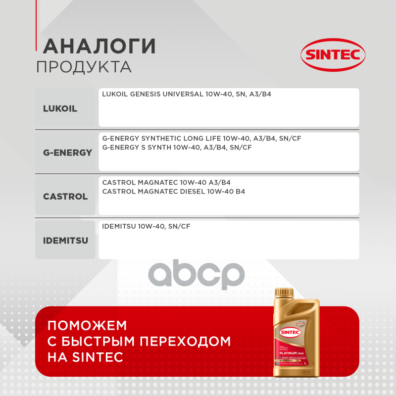 Sintec : 600166 PLATINUM 7000 SAE 10W40 API SN/CF A3/B4 1л