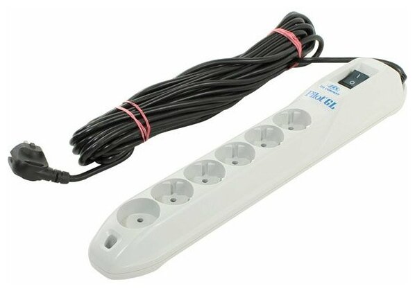 Сетевой фильтр Pilot GL, 6 розеток, с/з, 10А / 2200 Вт белый 3 м 430 мм 75 мм 54 мм 6